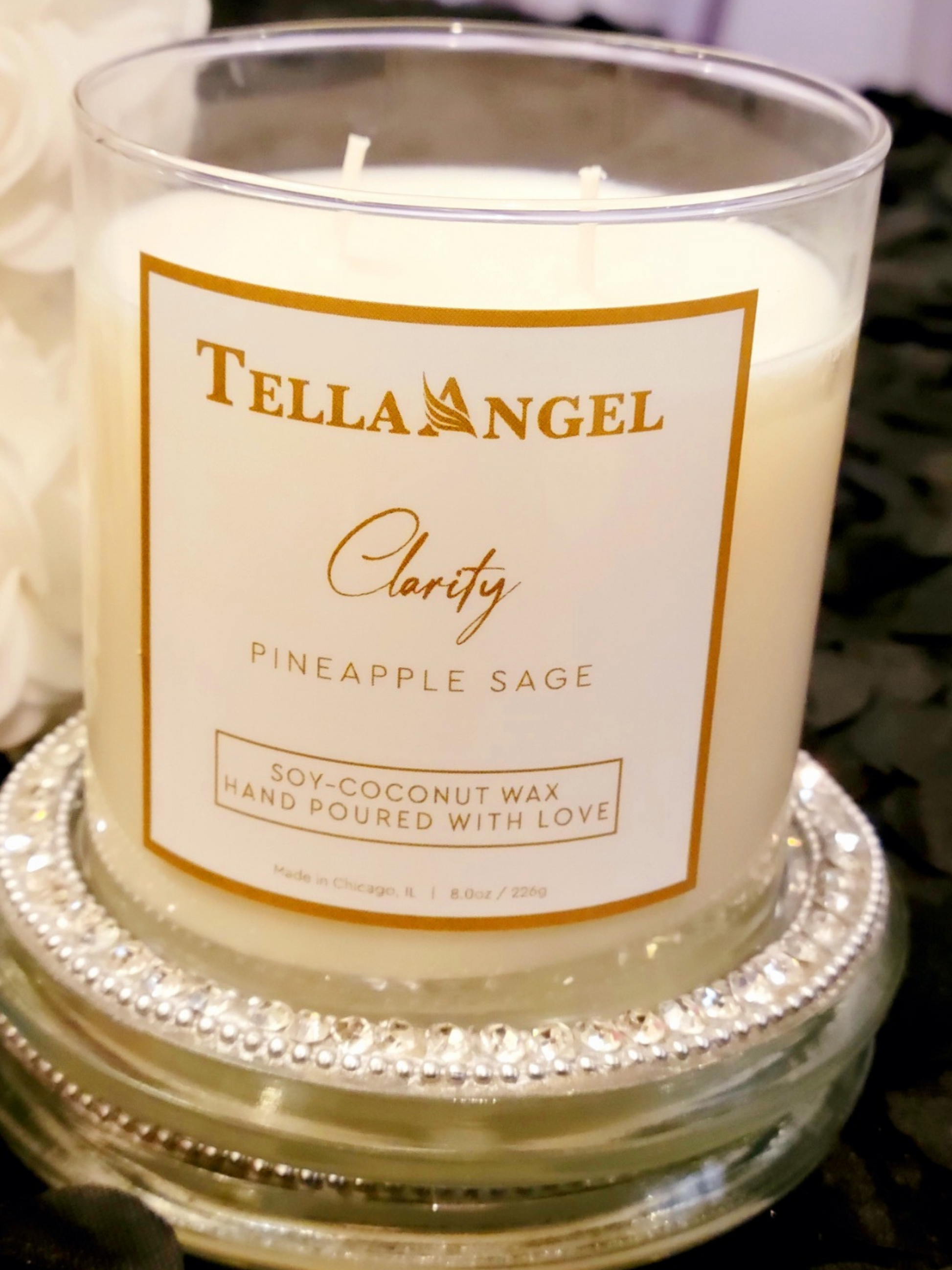 Our Clarity Pineapple Sage scented candle offers a vibrant and refreshing fragrance that combines the sweet, tropical notes of pineapple with the earthy, herbal essence of sage. When lit, this candle releases a bright and uplifting aroma that invigorates the senses, creating a serene and rejuvenating atmosphere.